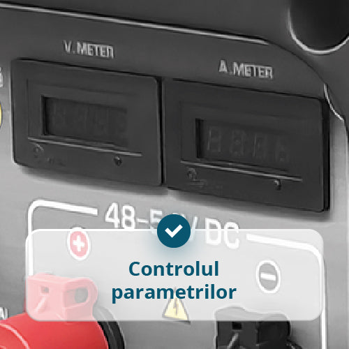 • Funcționare automată a generatorului – în modul AUTO, generatorul monitorizează automat tensiunea bateriei, pornește când aceasta scade sub 50V și se oprește când tensiunea la ieșire ajunge la 54,5 ± 0,5V și curentul scade sub 20A.