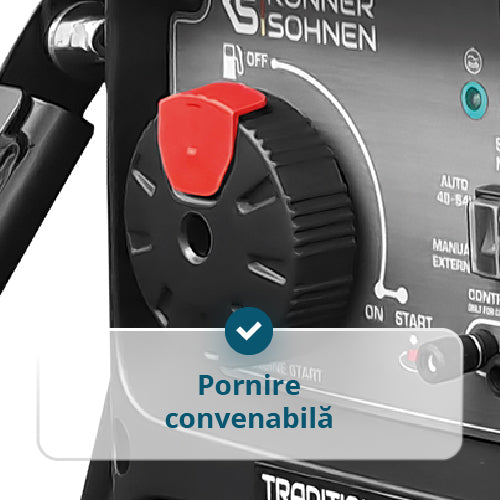 • Set de transport – mâner pliabil și roți, care permit deplasarea ușoară a generatorului și extind semnificativ posibilitățile de utilizare.
