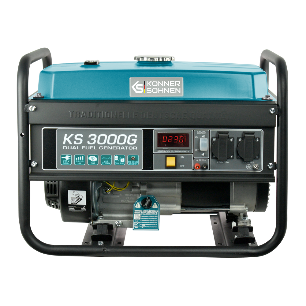A „Könner & Söhnen” generátorok nagyított acél üzemanyagtartállyal vannak felszerelve, amely meghosszabbítja a generátor működési idejét újratöltés nélkül. Az üzemanyagszint-jelző a tartályon található a könnyű használat érdekében.