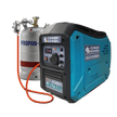 Funcționează atât pe benzină, cât și pe gaz (propan-butanic), iar tot ce este necesar pentru utilizarea gazului ca combustibil este inclus în pachet: un furtun cu regulator, care se conectează la butelie și asigură o conexiune sigură. Trebuie doar să conectați generatorul la butelie și să porniți motorul.